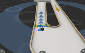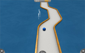 Svojí myslí musíte ,,dostrkat" míček do cíle. Záleží, jak pojedete rovně, jak rychle cíle dosáhnete.